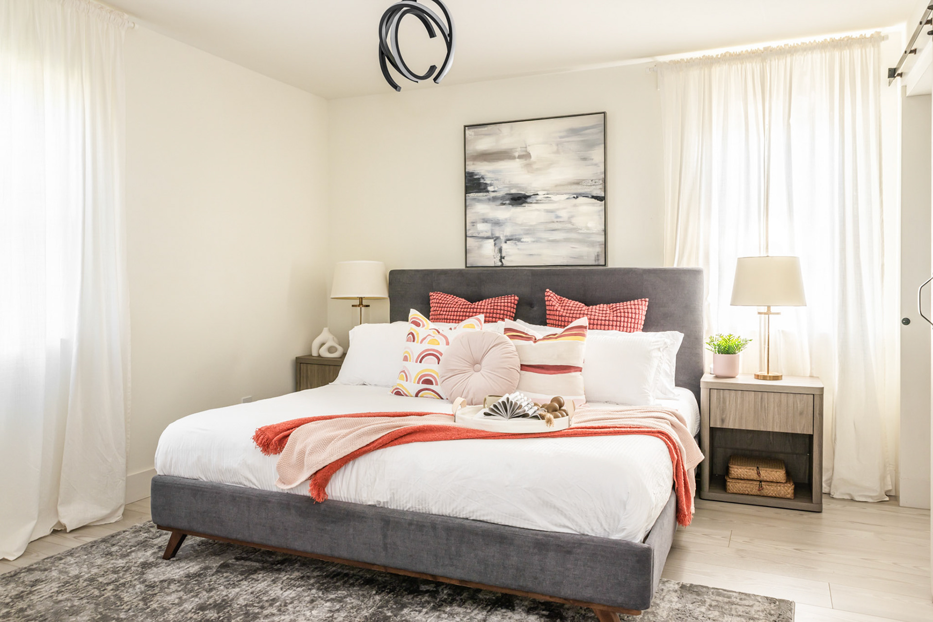 The open-concept common area is spacious and filled with natural light. The fully-equipped kitchen is a chef’s dream! Enjoy the new stainless steel appliances, stylish cabinets, and natural marble countertops. It’s easy to make all your favorite dishes while simultaneously socializing with your whole family or group, thanks to the open design.